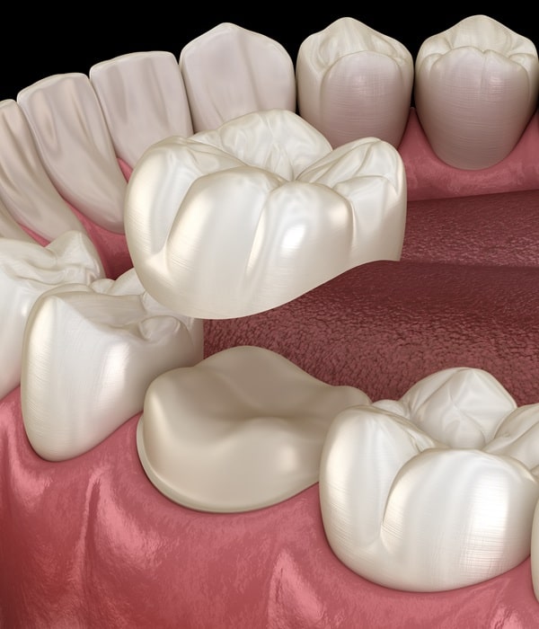 A dental crown is a tooth-shaped cap that is fitted on top of your natural tooth. It is custom-made in a dental lab and designed to look perfectly natural in your mouth. The crown is securely attached to your tooth using dental cement or adhesive.